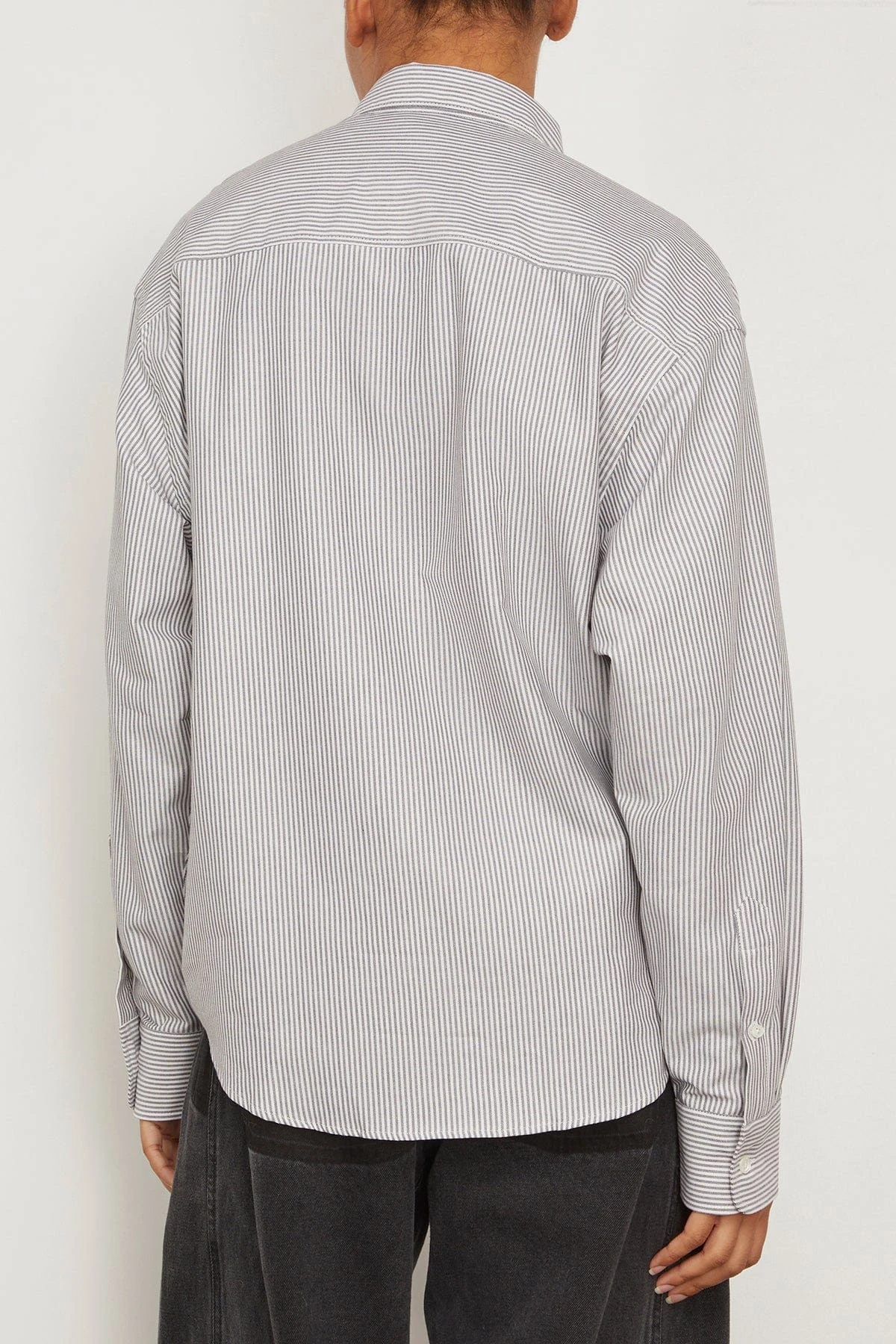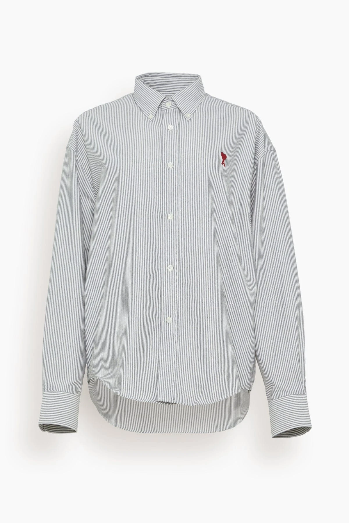 The Ami Boxy Fit Striped Shirt is a great everyday piece to add to your wardrobe. This button down shirt features a boxy silhouette in a striped material for a more casual look. Wear yours with jeans and flats.