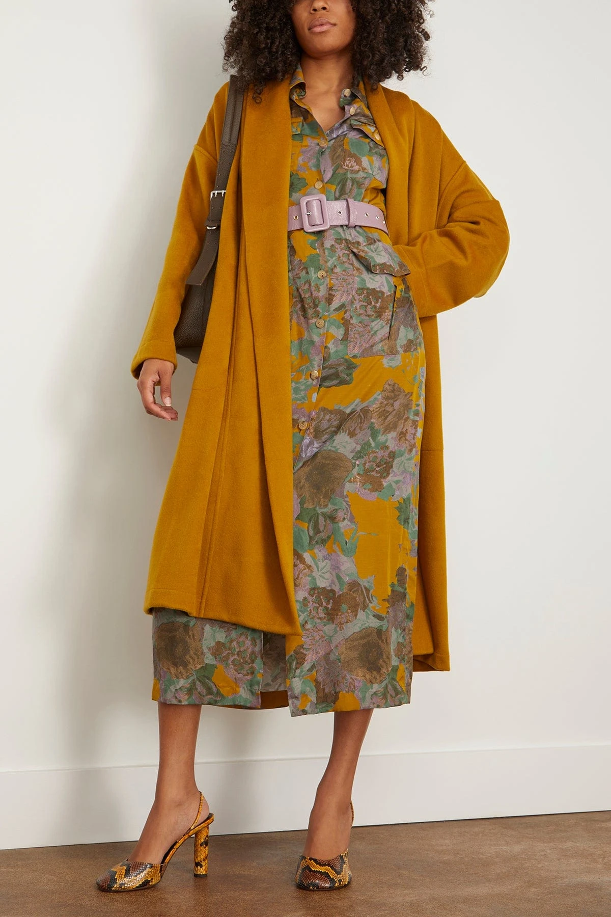 The Labo.Art Cappotto Elena Feltro in Curry is a long duster coat with open front design and drop shoulder seams. We love this fall staple with jeans and a tank.