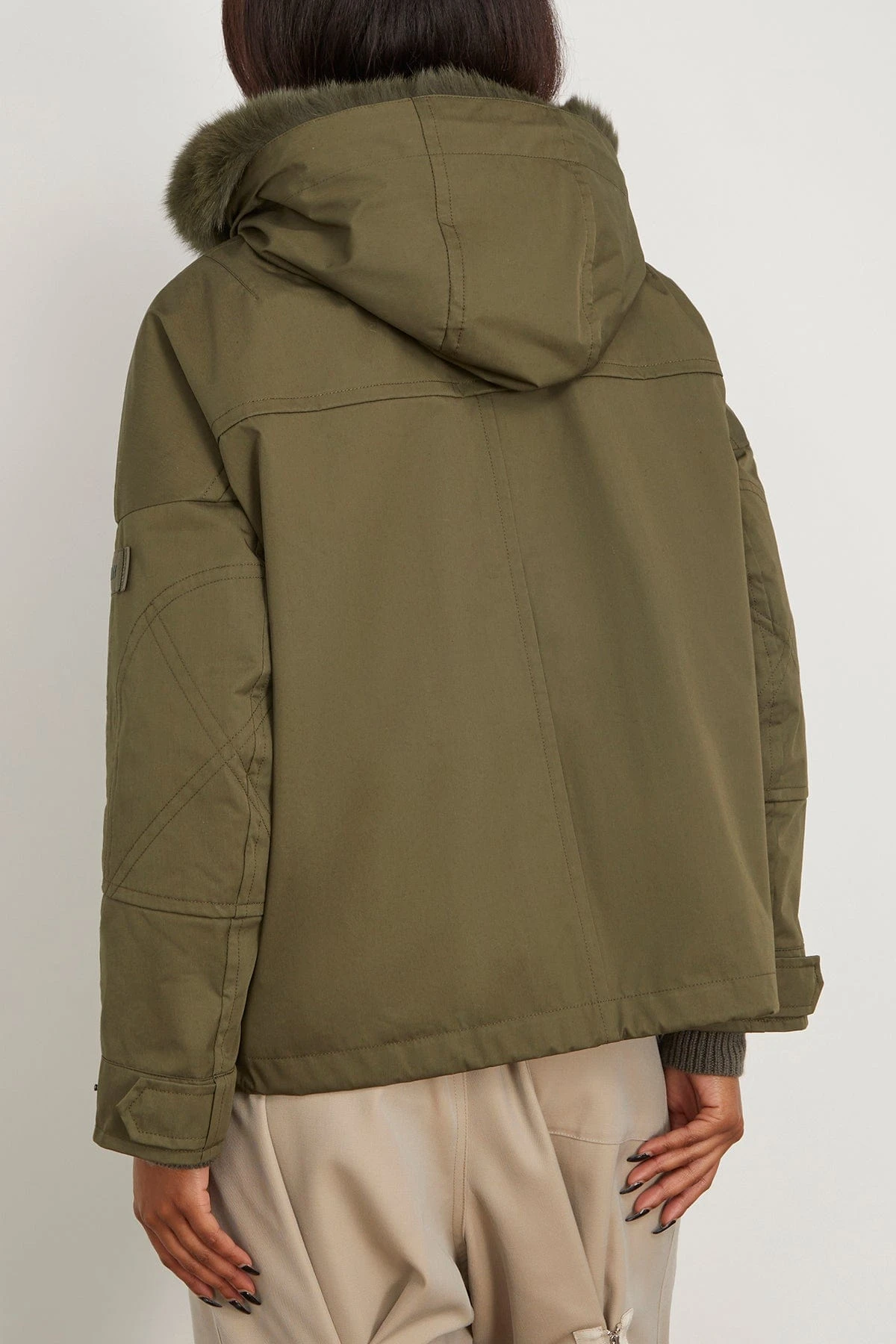 The Yves Salomon Cotton Parka Coat with Rabbit/Fox Trim will get you through the winter. This parka features a rabbit and fox trim with a water proof exterior. Wear yours with jeans and a sweater.