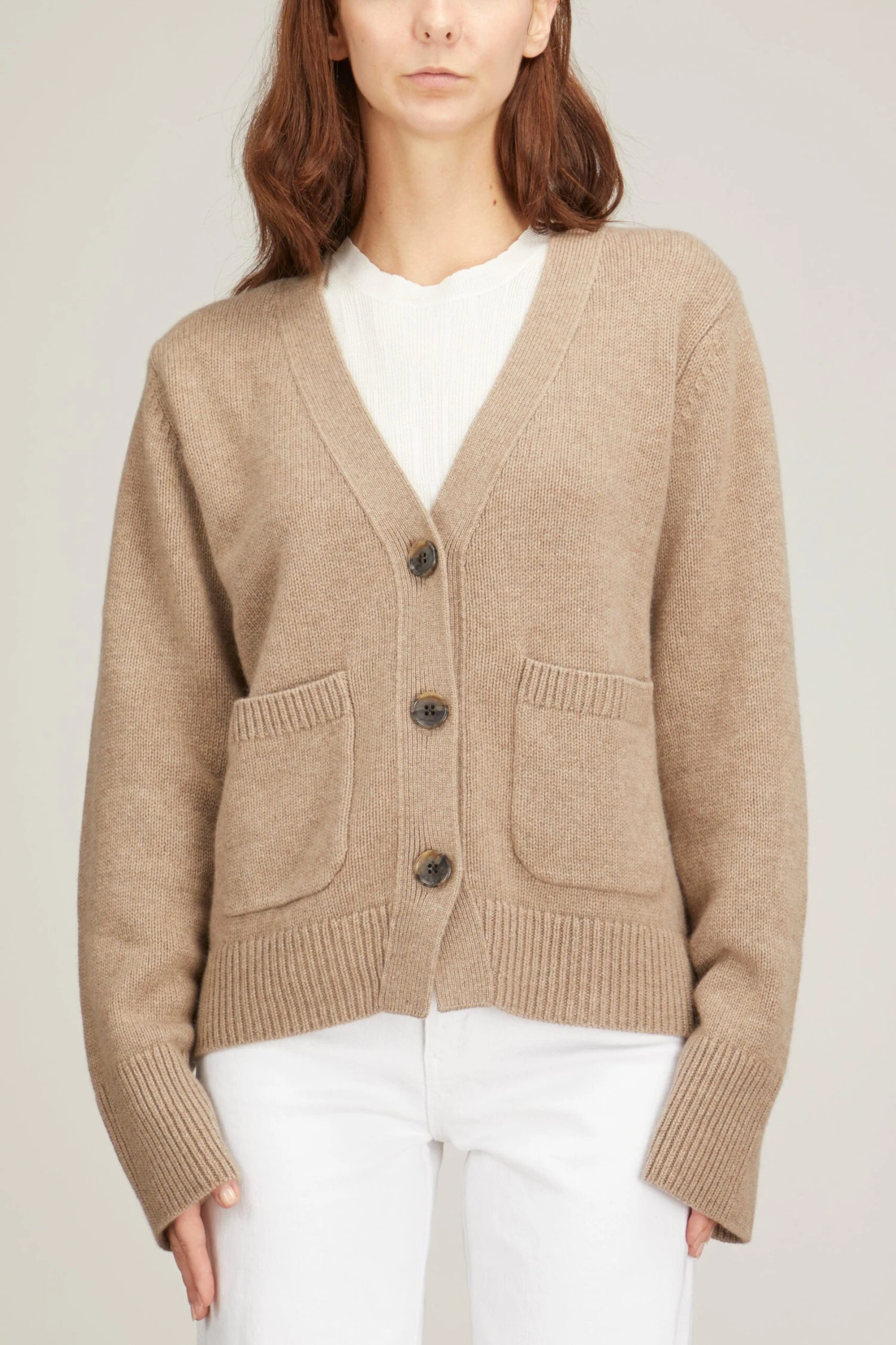 Your favorite cardigan is back. Lisa Yang Danni Cardigan features their signature relaxed silhouette with patch pockets and v-neckline. Wear yours over a dress with boots.