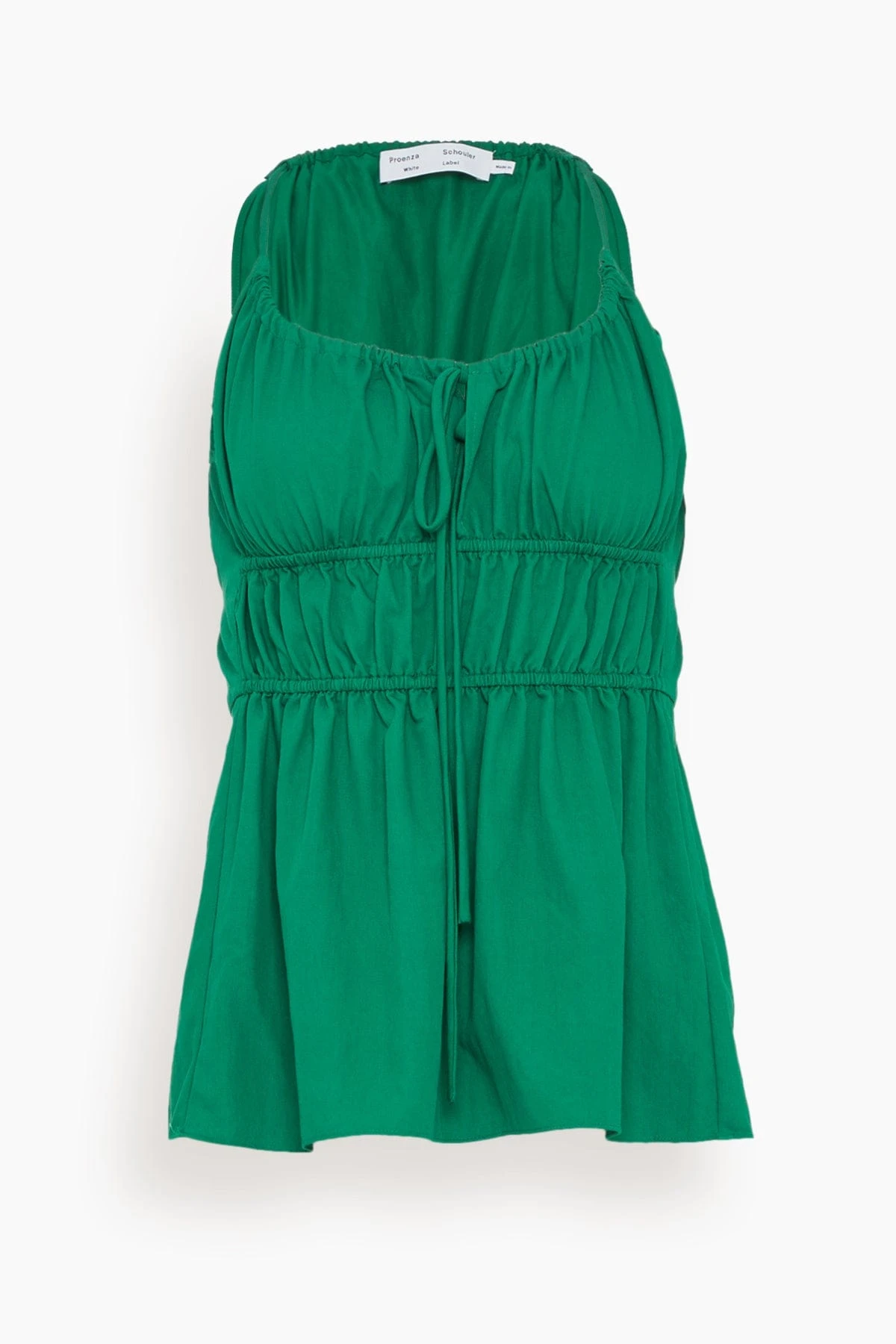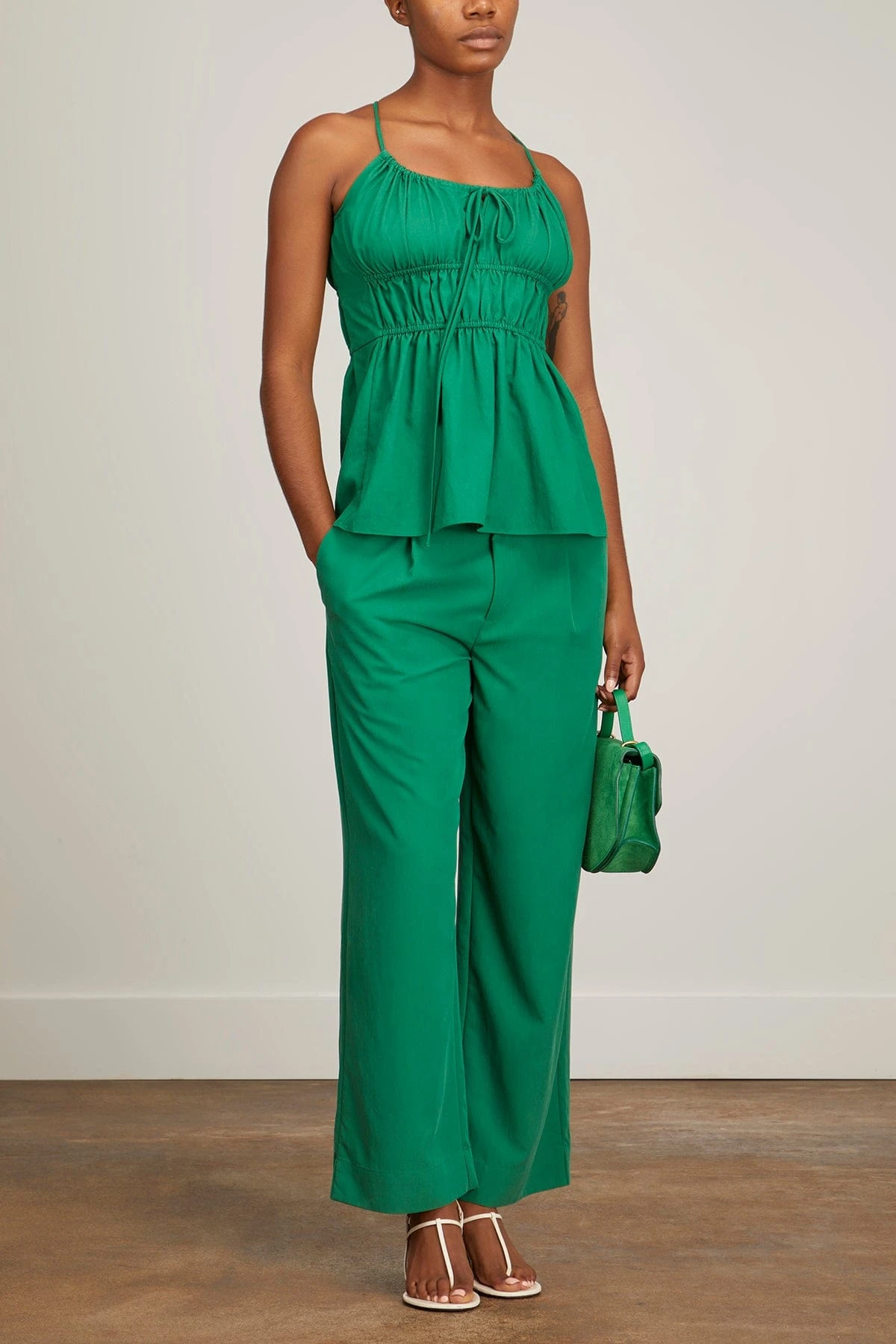 The Proenza Schouler White Label Drapey Suiting Ruched Top is perfect for a hot summer day. This top features a scoop neckline with ruching in a lightweight material. Wear yours with the matching trousers and sandals.