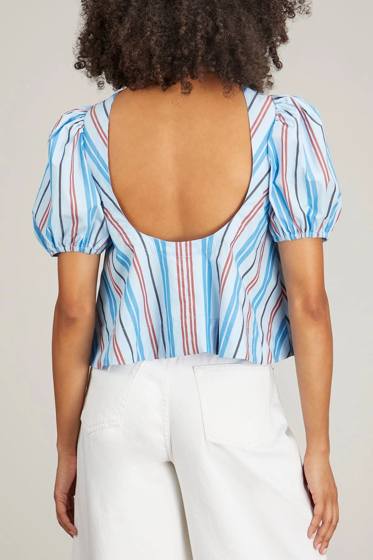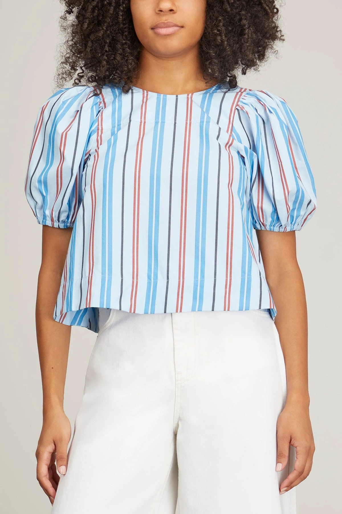 The Ganni Stripe Cotton Open Back Top is crafted in their must-have print of the season. You’ll love the feminine puffed sleeves and open back of this top. Wear yours with trousers and shorts.