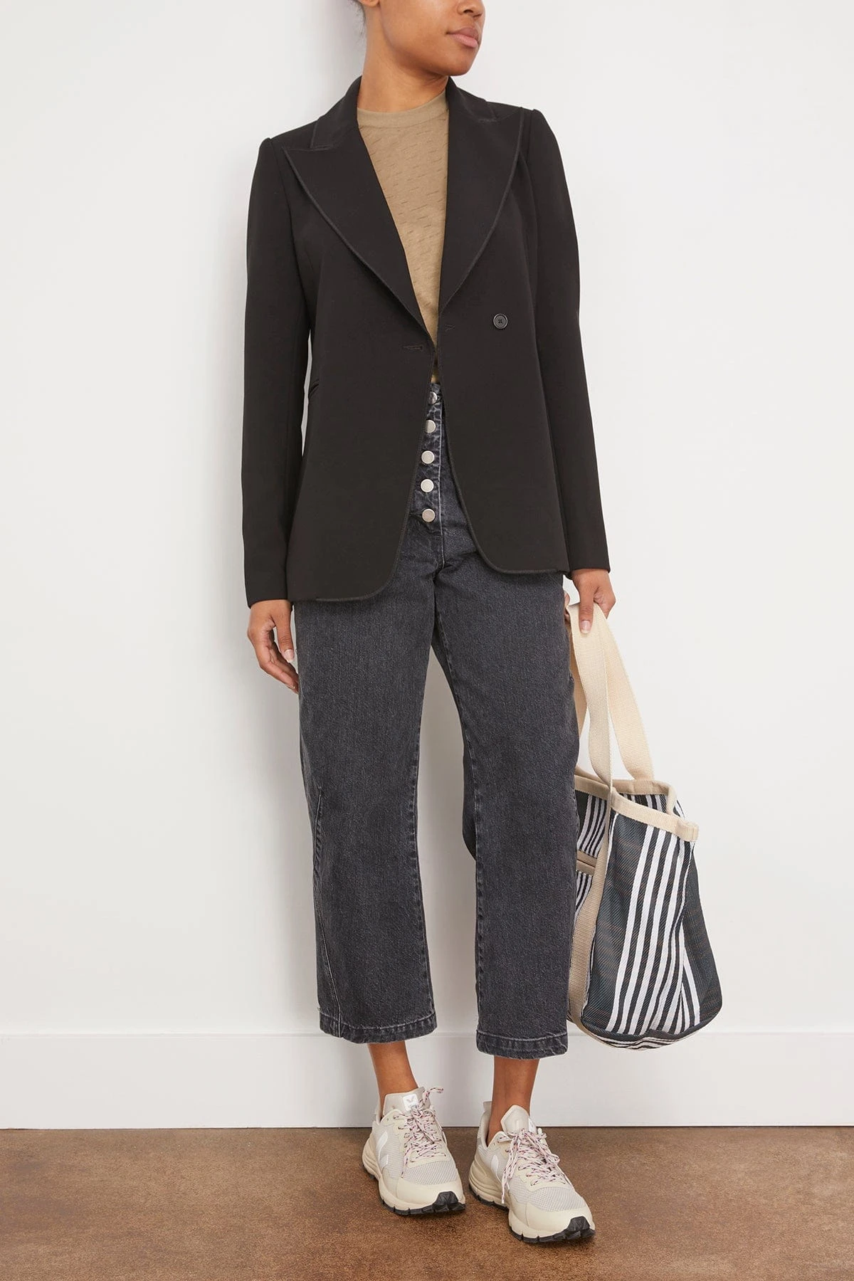 The Rachel Comey is a classic double breasted blazer with welt pockets and peak lapels. This style is perfect for the office space or a night out. We love this unique blazer paired with a midi skirt and loafers.