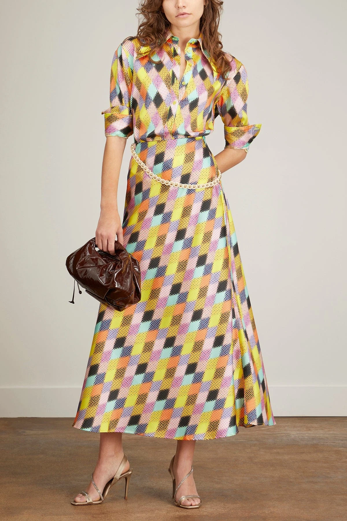 The Christopher John Rogers Halftone Harlequin Slim Shirt is a must-have piece from their Fall 23 Collection. This button down shirt is crafted in a bold harlequin print with a slim silhouette. Wear yours with trousers and loafers.