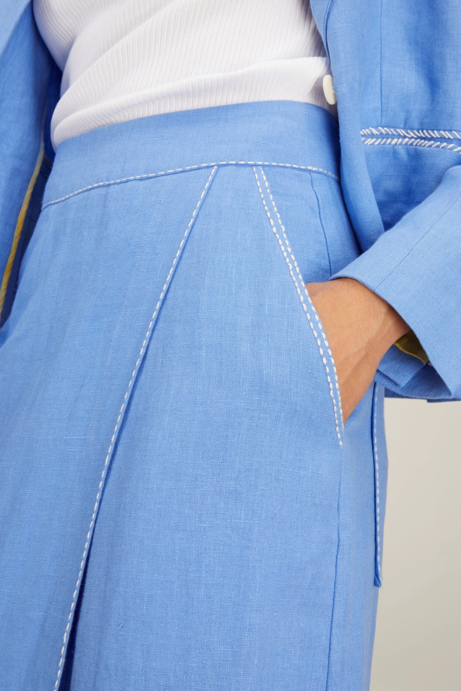 The Mii Linen Hand Embroidered Skirt is a piece you’ll have for years to come. This midi skirt features a wrap front with delicate embroidery. Wear yours with a blouse tucked in.