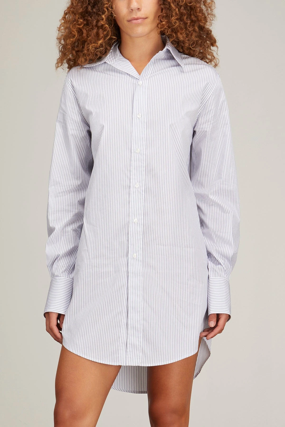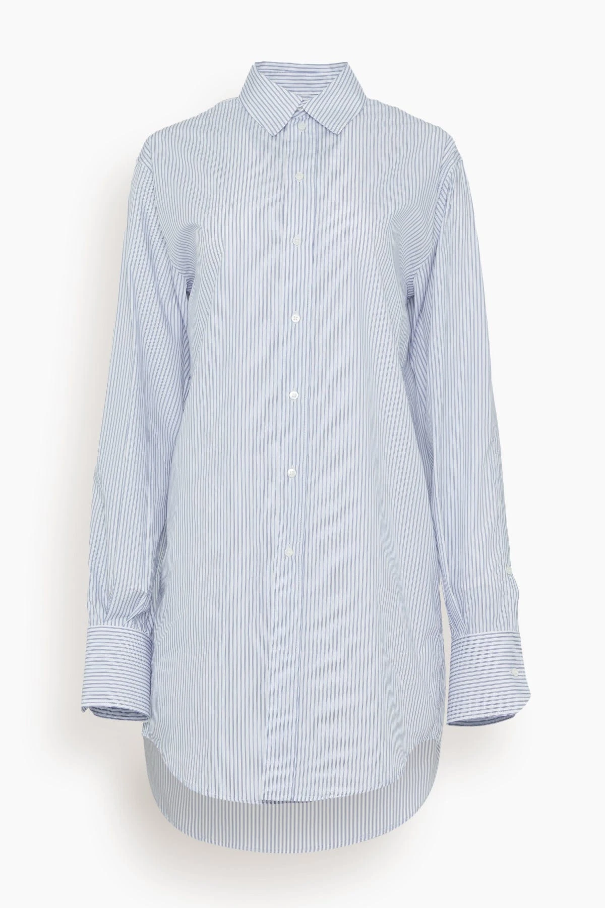 The Sa Su Phi Marcela Long Shirt is a great twist on a staple. This button down shirt features a long length and sleeves in a crisp striped cotton. Wear yours with shorts and sandals.