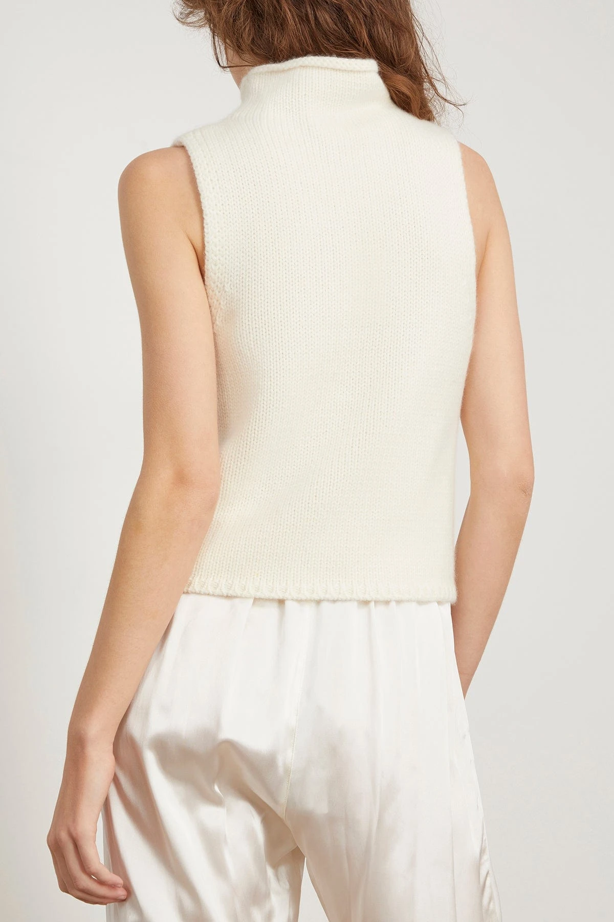 The Sablyn Marceline Sleeveless Cashmere Turtleneck can easily be worn layered or alone. You’ll love the slim silhouette of this sleeveless turtleneck to wear under blazers and jackets. We love it paired with high rise jeans and a cropped jacket.