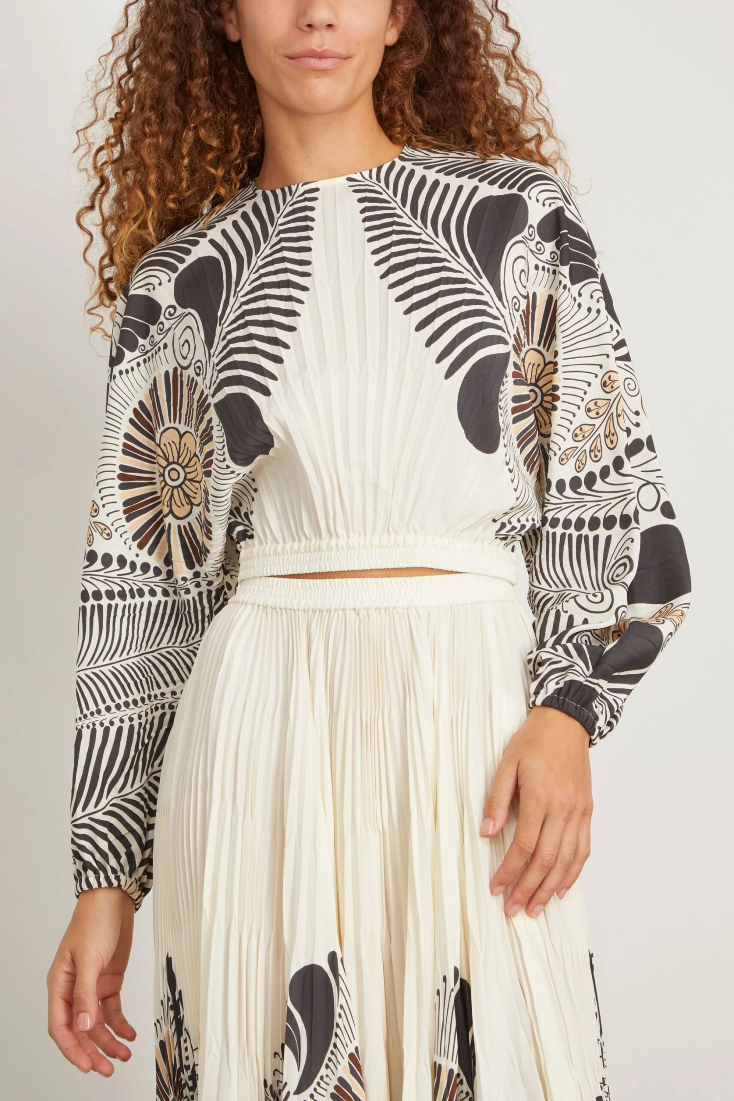 The Heirlome Maria Top was made in collaboration with Mexican artisan JosePajarito. You’ll love the allover pleating of this cropped top with blouson sleeves. Wear yours with the matching skirt and boots.