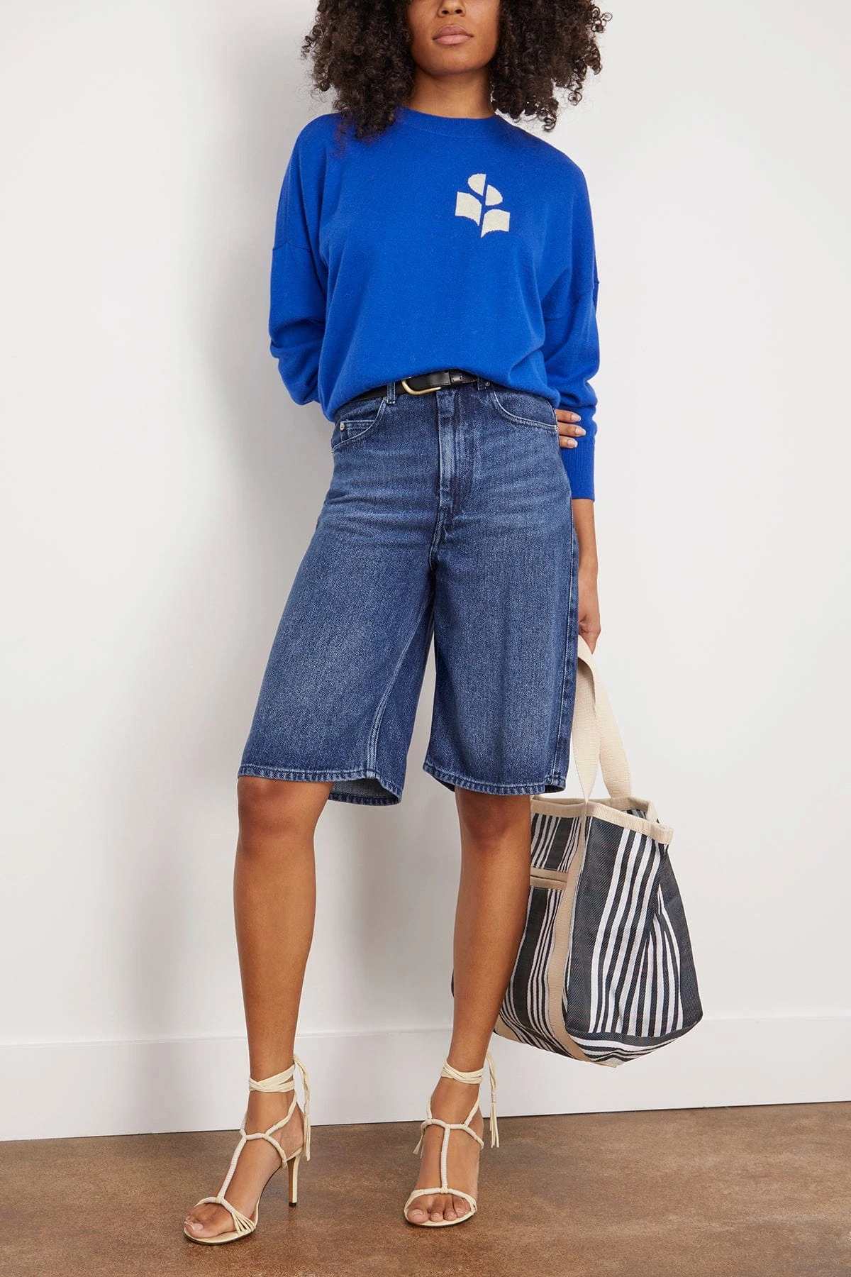 The Isabel Marant Etoile Marisans Pullover in Electric Blue is a regular-knit cotton sweater with long sleeves. We love this classic Isabel style paired with joggers and sneakers.