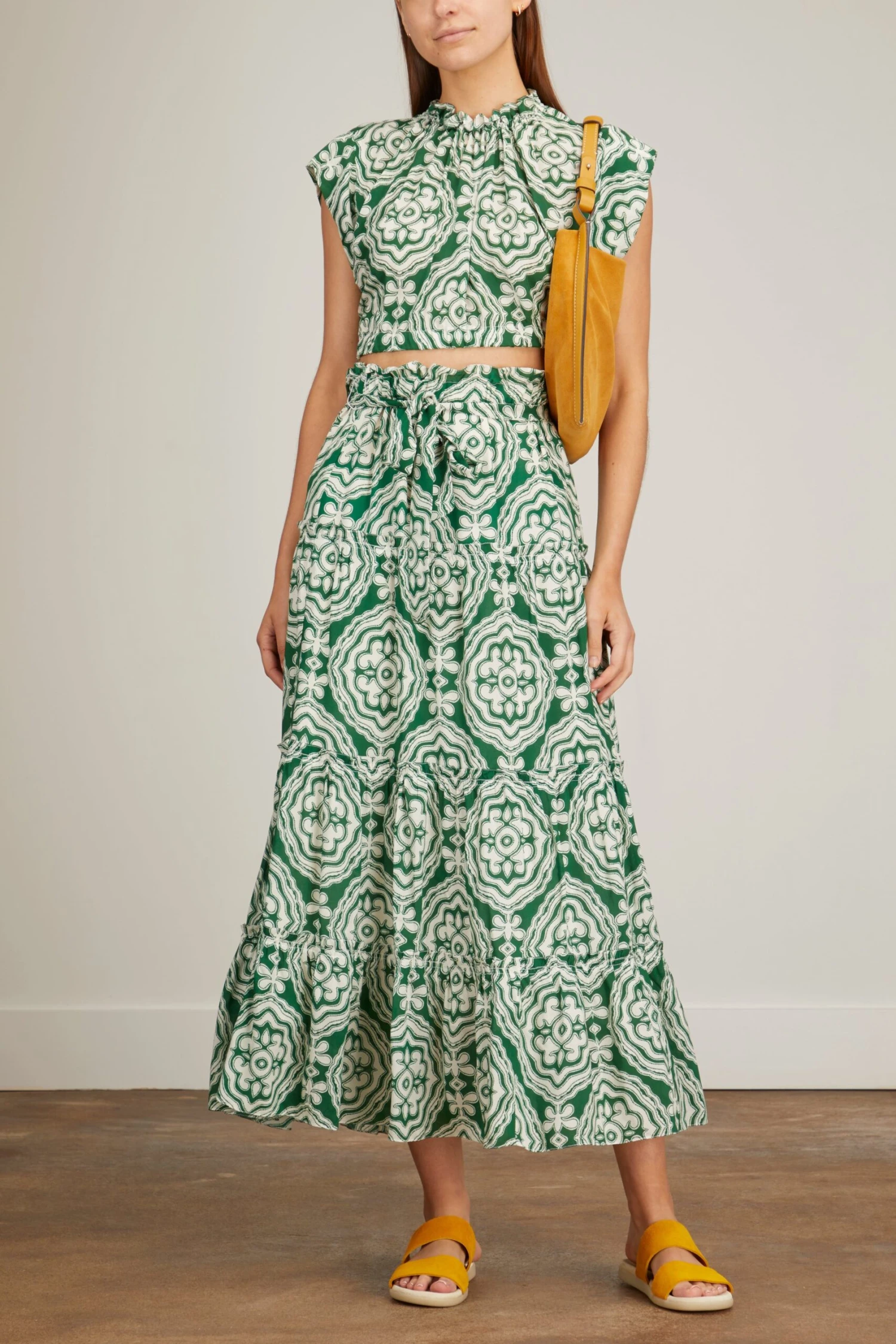 The Lemlem Medallion Maxi Skirt takes its inspiration from ancient architectural patterns. You’ll love the loose silhouette of this maxi skirt with an elastic waistband and tiered bodice. Wear yours with the matching top and sandals.