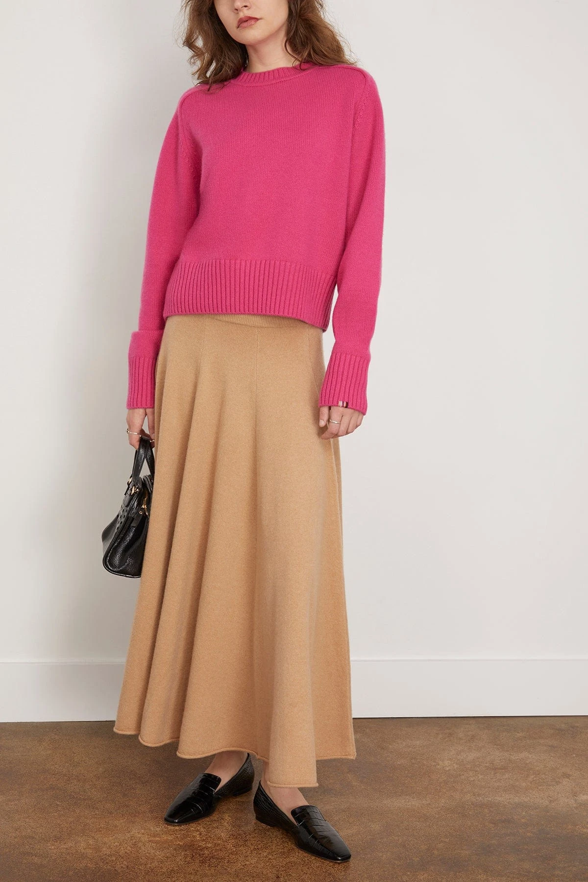 The Extreme Cashmere Please Sweater in Dragon is a classic, but reinvented cropped sweater in heavy knit with saddle sleeves. This sweater is perfect for any occasion. We love it with jeans and loafers.