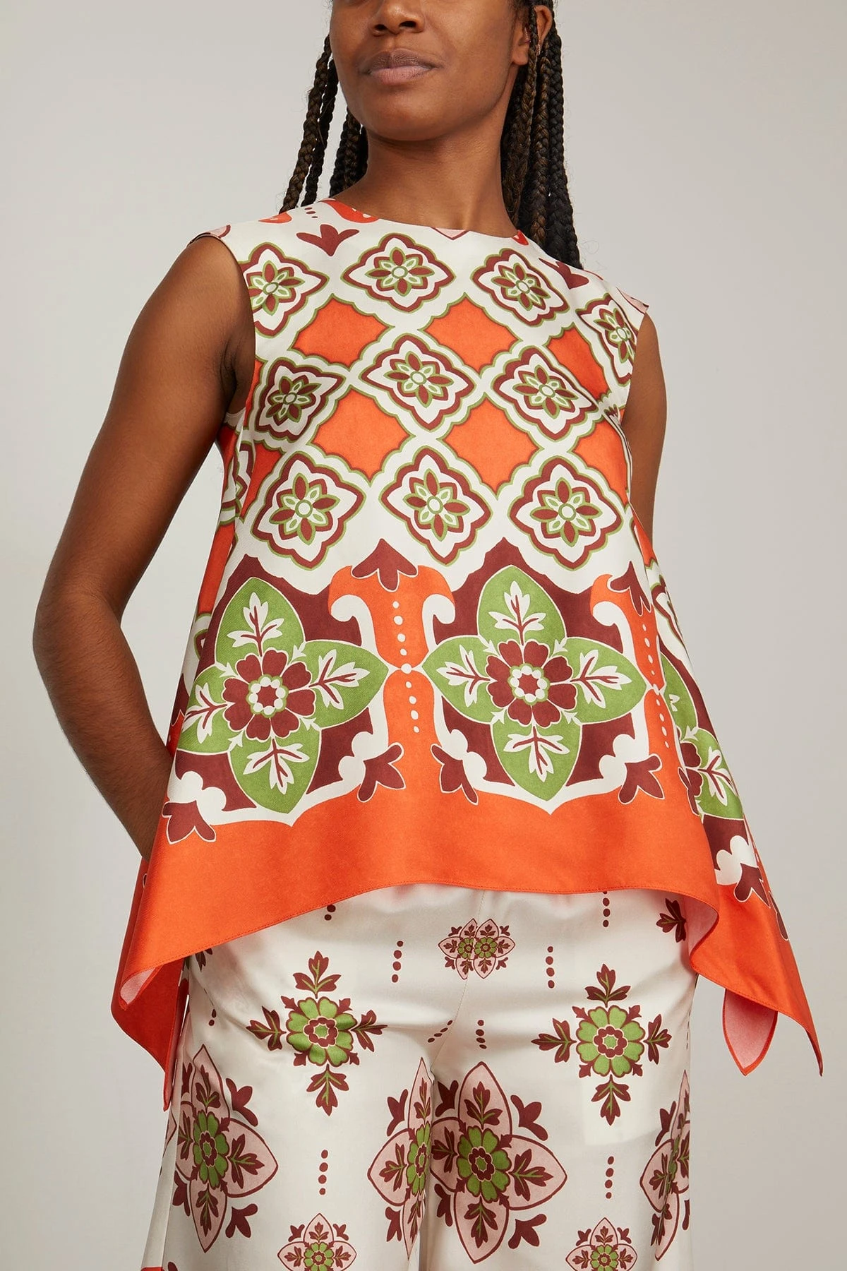 La Double J took two of their favorite tops – the Foulard Shirt and the La Scala – and combined them for the ultimate summer statement shirt. Crafted from the butteriest Italian silk twill, The San Carlo Top starts at the shoulders in a classic tank cut, before flowing into a romantic scarf train that floats dramatically behind you as you sashay through the trattoria.