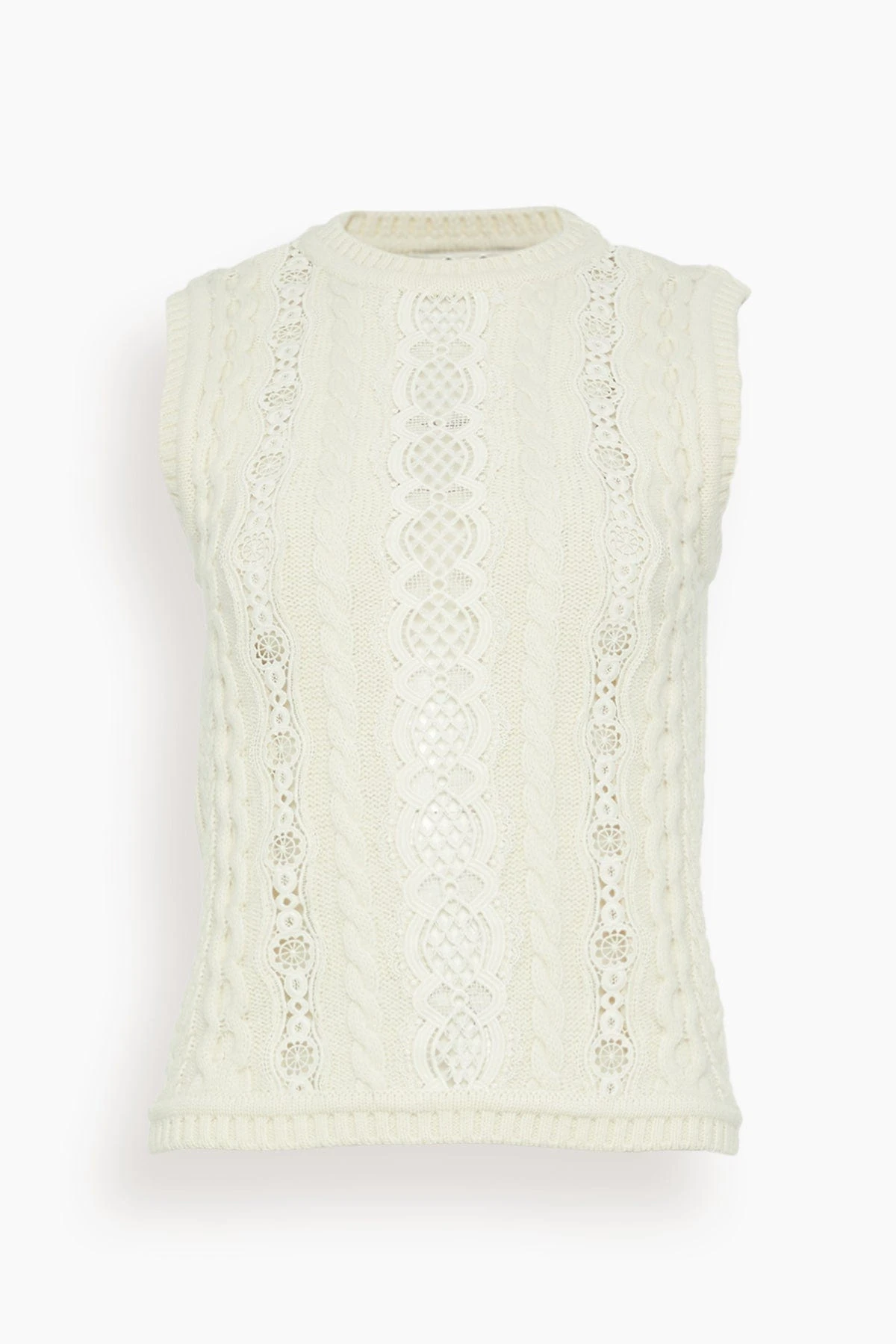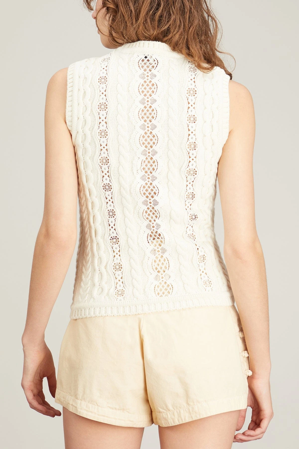 The SEA Dentelle Knit Tank Top has the feminine flare you love from this designer. This sleeveless sweater features delicate lace panels on a chunky cable knit. Wear yours with trousers and sandals.