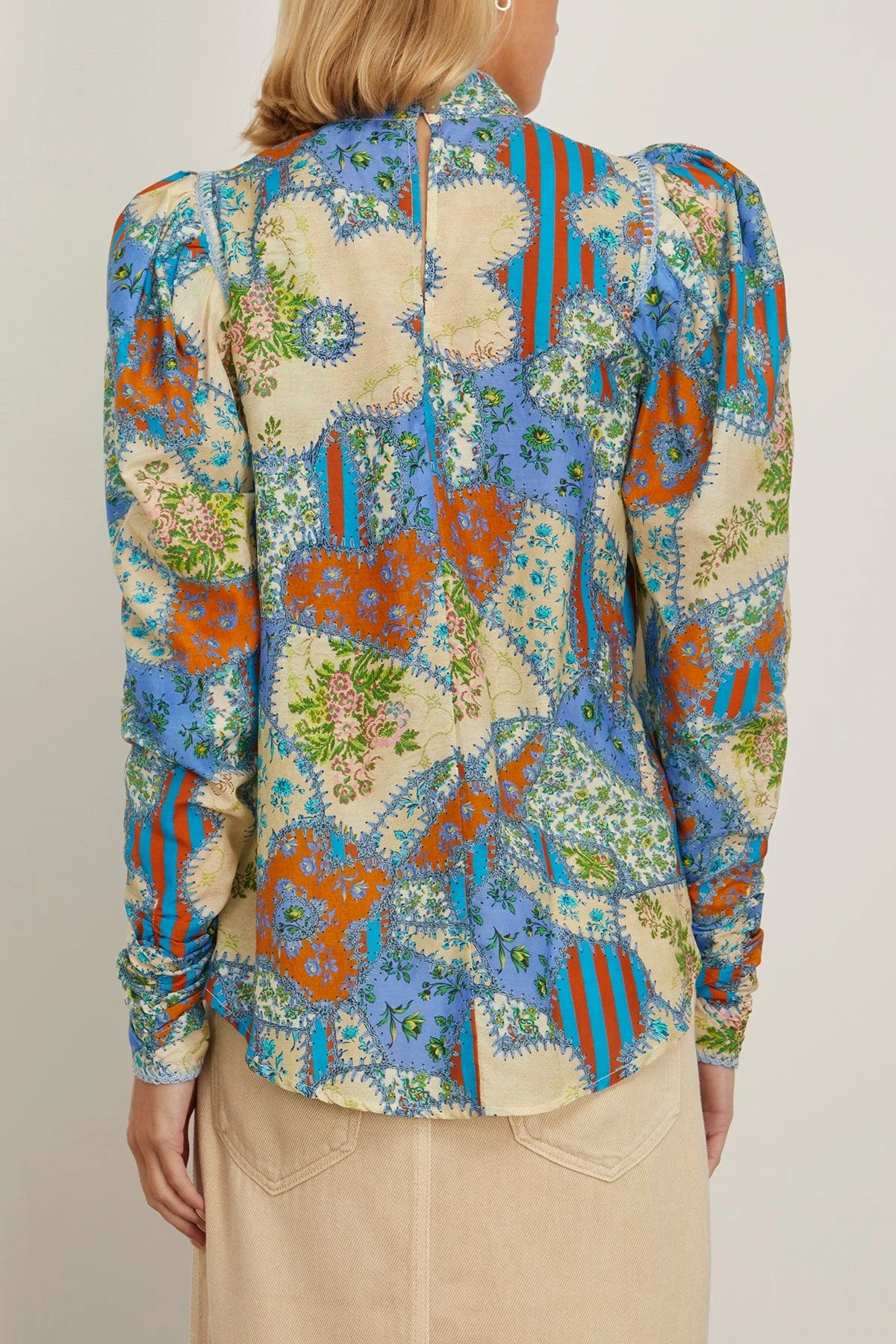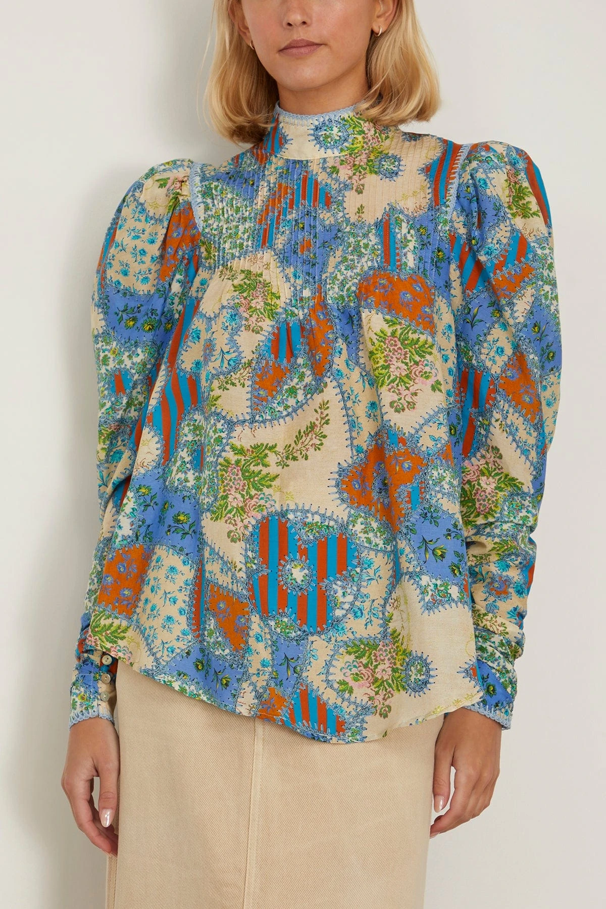 The Alemais Skye Patchwork Blouse features the feminine flare you love from this designer. This blouse is crafted in a bold patchwork floral print with pintuck detailing and a high neckline with crochet edging. Wear yours tucked in to trousers.