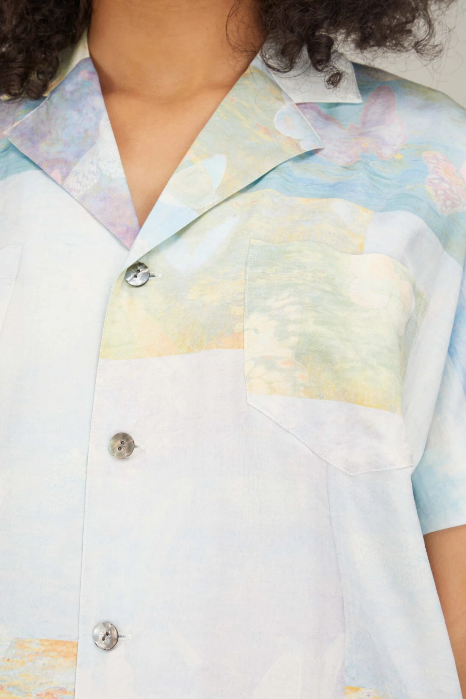 The Tanaka Southern French Shirt is a must-have piece from their Spring 23 Collection. This button down shirt is crafted in an underwater inspired print with a boxy silhouette. Wear yours with wide leg trousers.