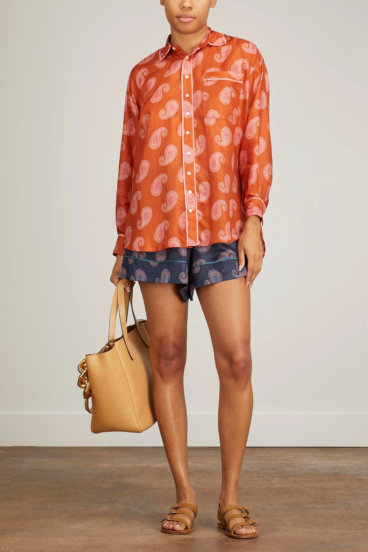 The Hannah Artwear Sydney Shirt features the relaxed fit you love from this designer. This button down shirt is crafted in their must-have printed silk habotai with contrasting piping. Wear yours with the matching pants and sandals.