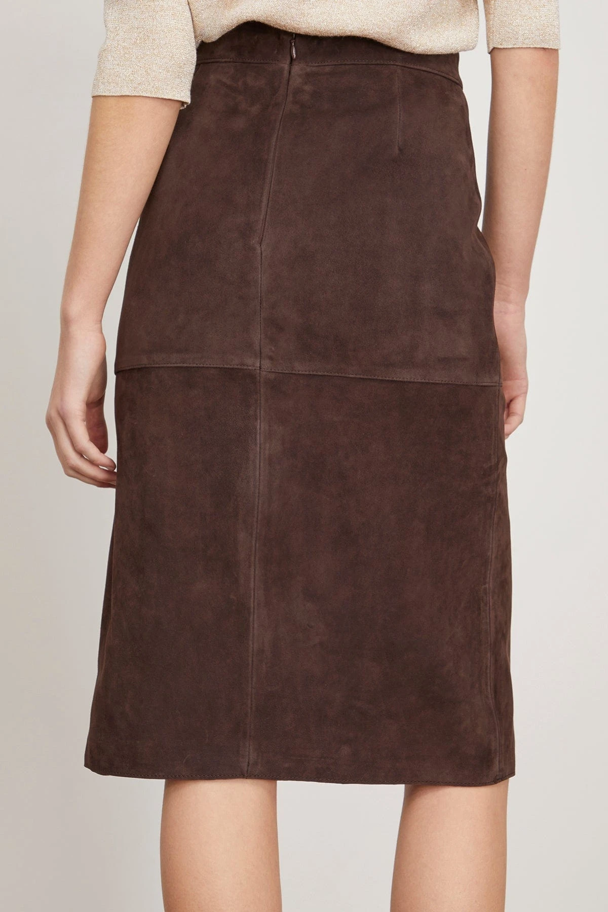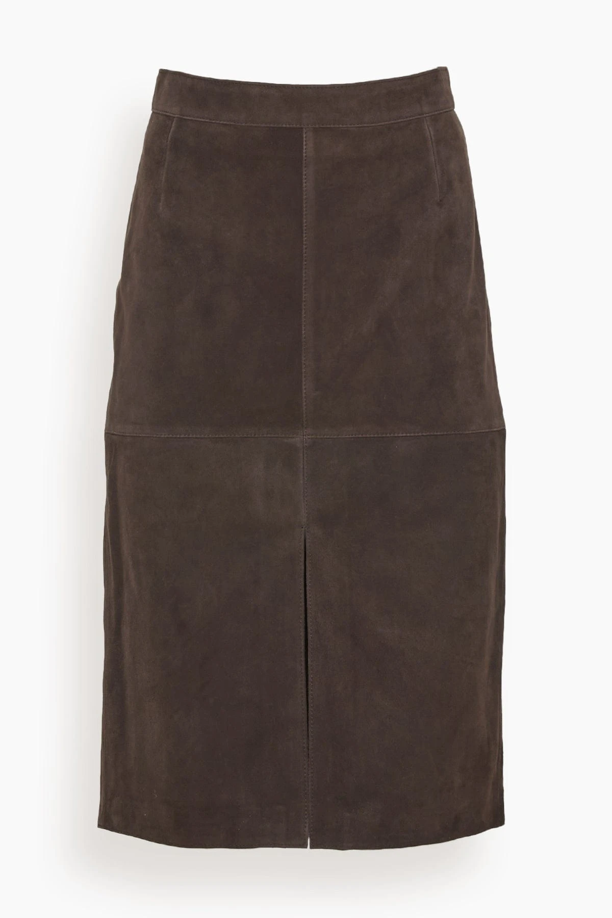 The Toteme Paneled Suede Skirt in Chocolate is defined with new proportions for a sophisticated look. It’s crafted from mid-weight suede with a high-hip waist and symmetric panels leading to a front slit that shows glimpses of the bonded seams. We love it seen with a tucked-in top and boots.