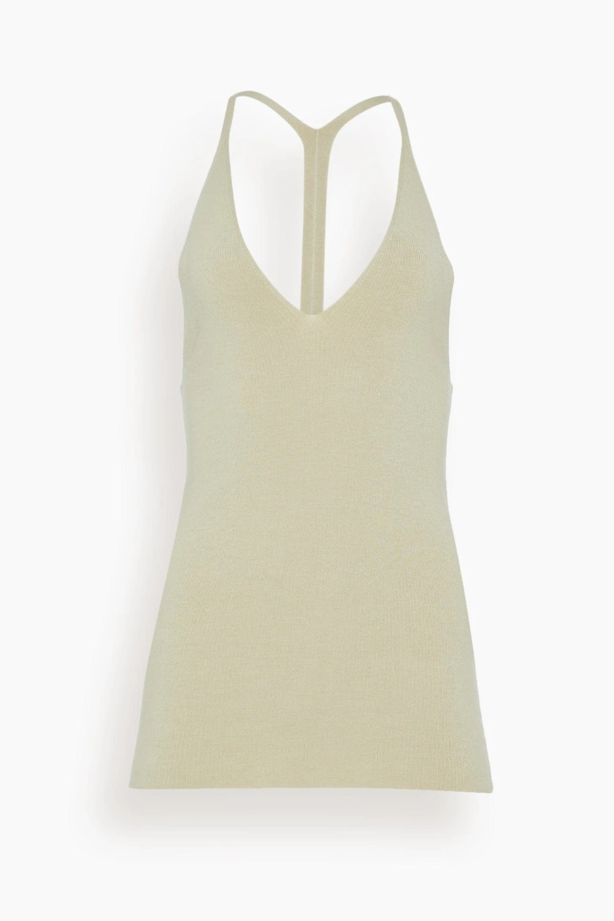 The Toteme Y-Back Merino Silk Top will be a staple in your wardrobe. This top feature the minimalistic look you love from this designer with a slim silhouette, v-neckline and t-back. Wear yours with trousers and sandals.