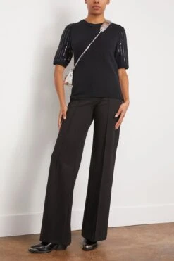 As featured in Look 36 of the Autumn/Winter ’23 Runway Show, the Ulla Johnson Ellery Jacket in Agave is crafted from luxurious slub suiting made from a cotton, linen, and silk blend. This jacket in a delightful slate-blue is designed with a slim sleeve and has a contrast ribbon belt that creates a cinched waist. We love it paired with the matching trouser and a tote.